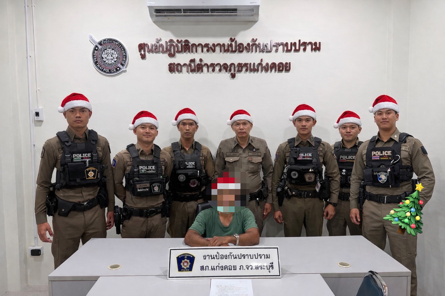 ชุดสืบสวน สภ.แก่งคอย -ได้ร่วมกันจับกุม ชายไทย อายุ 40 ปี -สถานที่จับกุม บริเวณหน้าเพิงพักไม่มีเลขที่