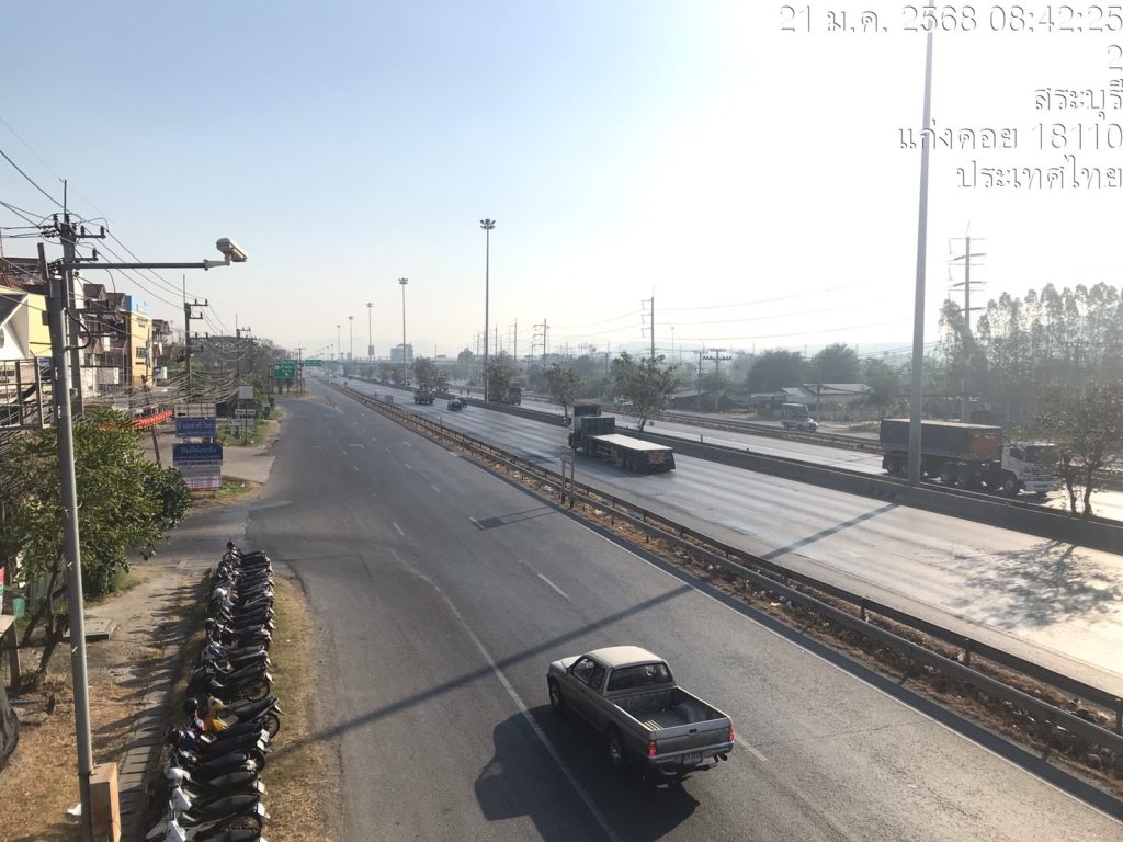 รายงานสภาพการจราจร ถนนมิตรภาพ กม.10+800 สะพานลอยหน้าซุ้มประตูเข้าแก่งคอย ดังนี้