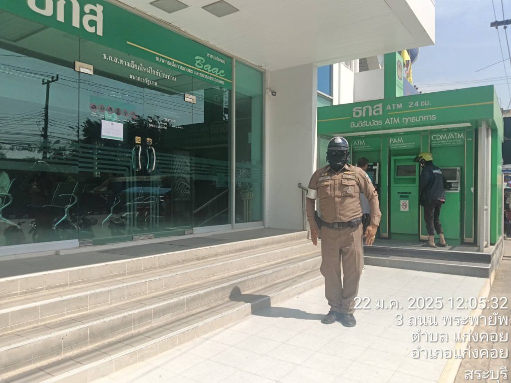 ร.ต.ท.ธวัชชัย อุรังคมณี รอง.สว.(จร) ตรวจเสริม(ช่วงเที่ยง) จุดเสี่ยงจุดล่อแหลม ATM – ร้านทอง-ร้านสะดวกซื้อ เขตเทศบาลเมืองแก่งคอย