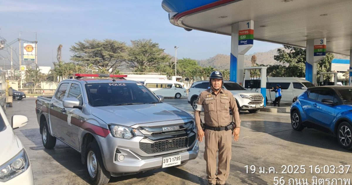 รอง.สว.(จร) พร้อมกำลังจราจร เปิดสัญญาณไฟวับวาบ ป้องกันการแข่งรถ อาชญากรรม บนถนนมิตรภาพบริเวณ ปั้ม