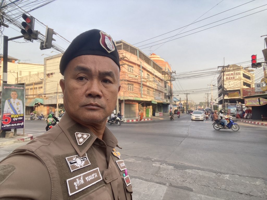 ร.ต.อ.ชูศักดิ์ ชนะแสวง ออกตรวจสภาพการจราจรบริเวณแยกตู้สัญญาณไฟแยกถนนเลียบสันติสุข