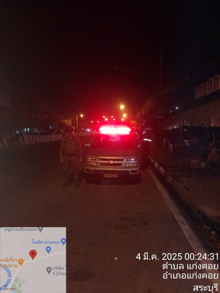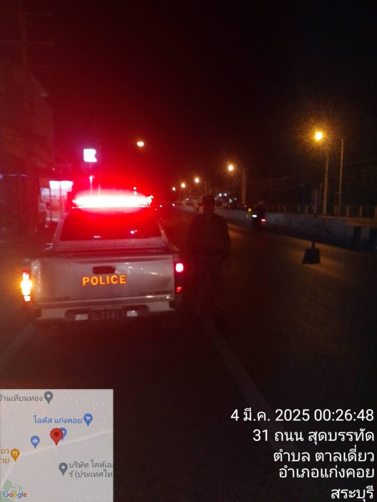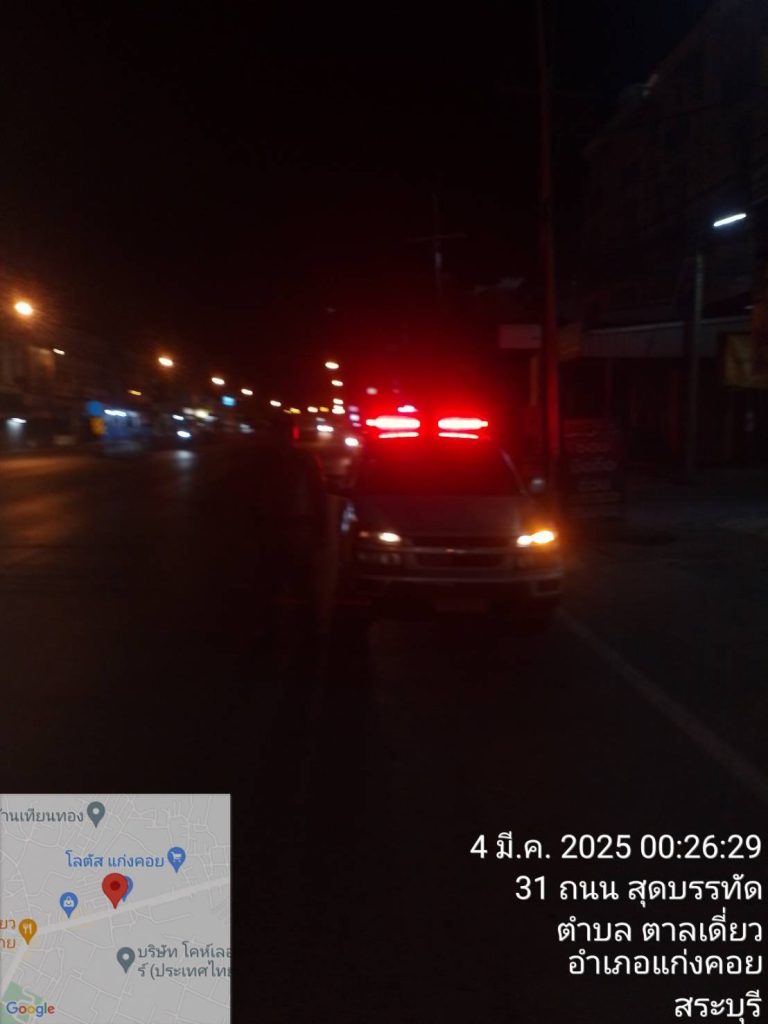 สายตรวจตำบลตาลเดี่ยว เปิดสัญญาณไฟวับวาบ ป้องกันเหตุการแข่งรถในทาง ถนนสุดบรรทัด หน้าบริษัทโคห์เลอร์ หมู่ 1 ต.ตาลเดี่ยว ไม่พบการแข่งรถ