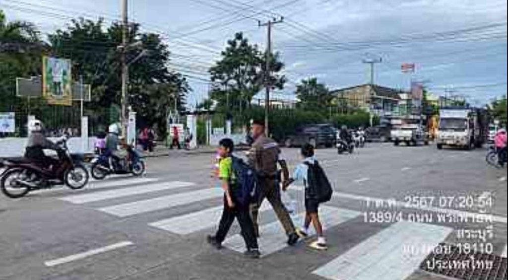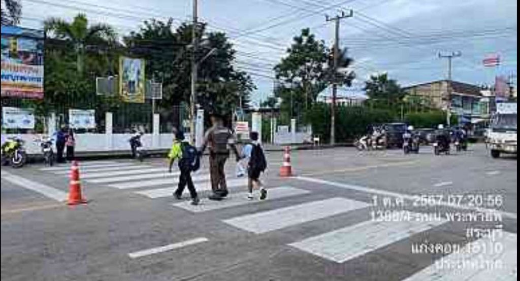 ร.ต.อ.ชูศักดิ์ ชนะแสวง เวร 60 ออกตรวจสภาพการจราจรถนนพระพายัพ หน้าโรงเรียนไพฑูรย์ ปริมาณรถน้อย การจราจรคล่องตัว