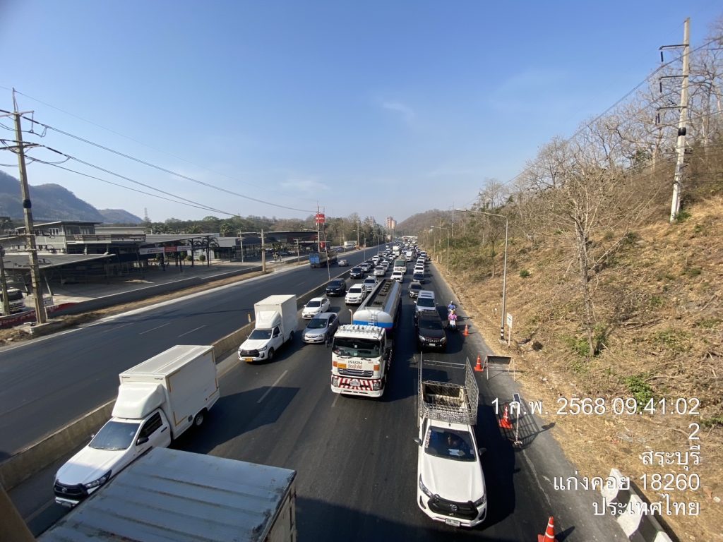🔺ขาขึ้น : รถมาชลอตัวช่วงขึ้นเนิน เนื่องจากมีการซ่อมผิวทาง ทำการลาดยางมะตอยช่องซ้ายสุด เปิดให้รถวิ่งได้ 2 ช่องด้านขวา ยังไหลลื่นดี