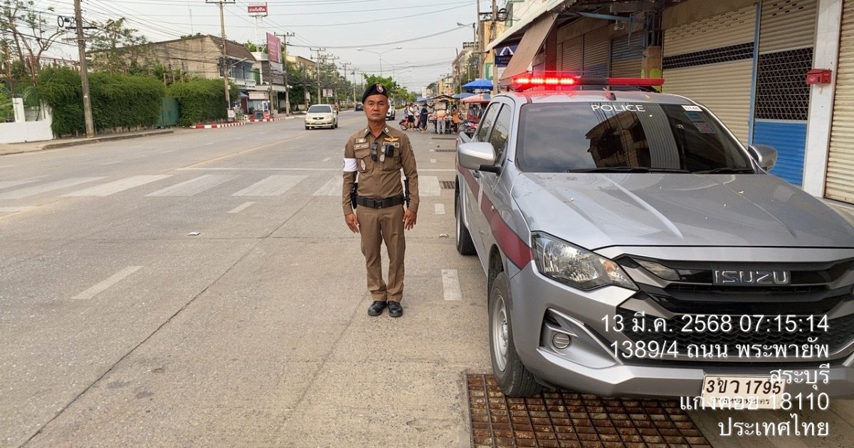 ร.ต.อ.ชูศักดิ์ ชนะแสวง ออกตรวจสภาพการจราจรถนนพระพายัพ หน้าโรงเรียนไพฑูรย์ ปริมาณรถน้อย การจราจรคล่องตัว