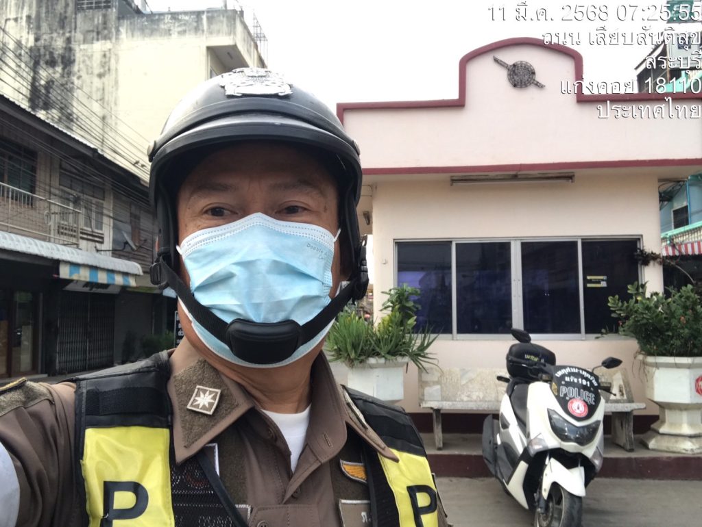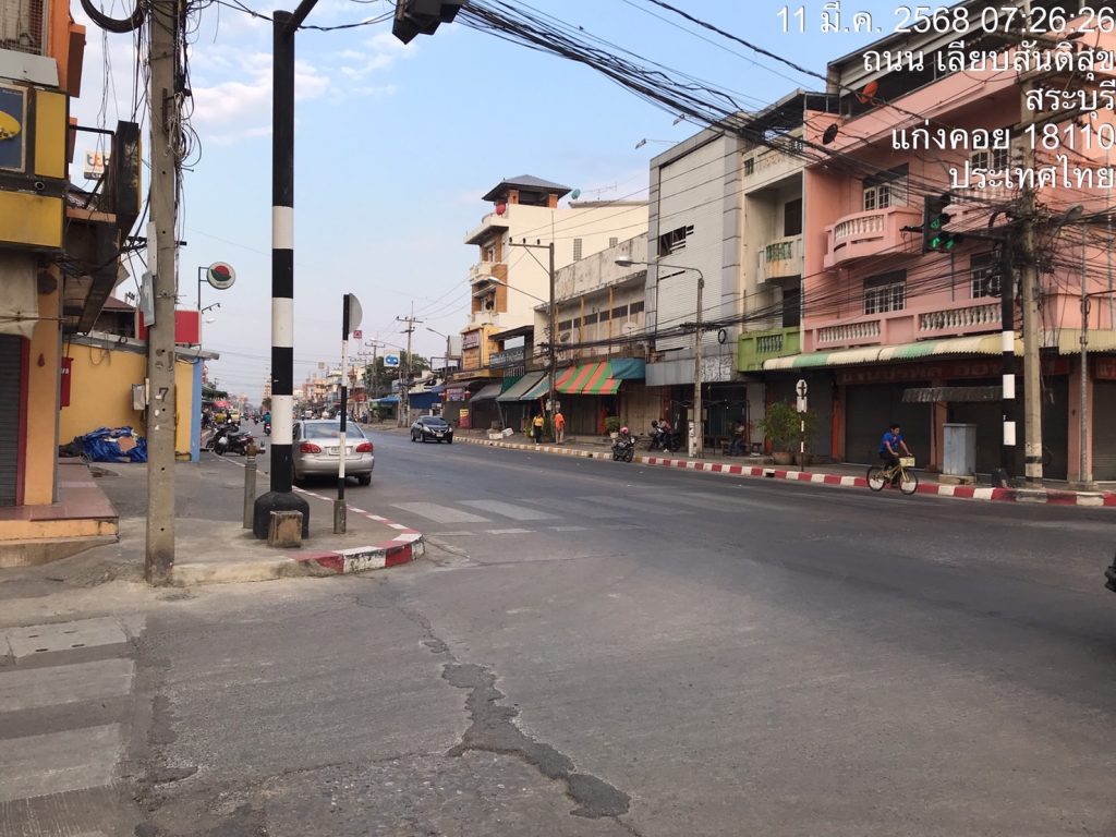 ร.ต.ต.ปิยะชน กุนอก ออกตรวจสภาพการจราจรบริเวณแยกตู้สัญญาณไฟปริมาณรถน้อยถนนสุดบรรทัด ถนนอุไรรัตน์ การจราจรคล่องตัว