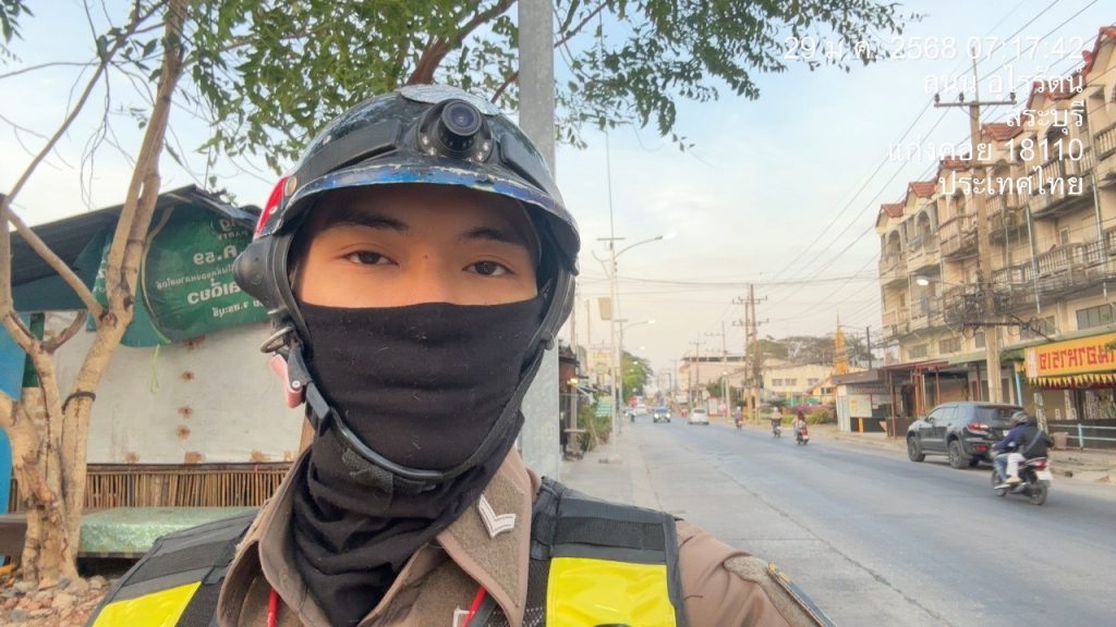 ร.ต.ต.ปิยะชน กุนอก เวร 60 ออกตรวจสภาพการจราจรบริเวณแยกตู้สัญญาณไฟปริมาณรถมาก ถนนสุดบรรทัด ถนน อุไรรัตน์ การจราจรคล่องตัว