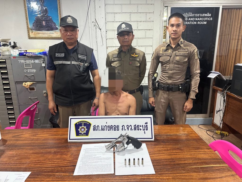 1. อาวุธปืนสั้นแบบประดิษฐ์ขึ้นเอง (ลูกโม่) ขนาด 38 จำนวน 1 กระบอก