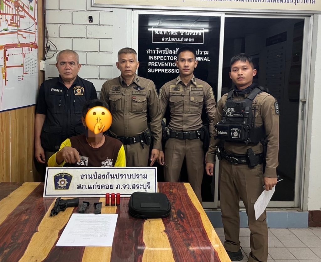 ได้ร่วมจับกุมตัว นายประสิทธิ์ จันทะน้อย อายุ 50 ปี สัญชาติไทย หมายเลขบัตรประจำตัวประชาชน 3-1911-00203-86-2 ที่อยู่ 17 หมู่ 3 ตำบลแสลงพัน อำเภอวังม่วง จังหวัดสระบุรี