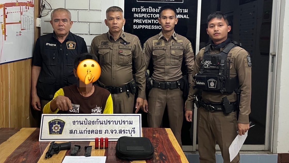 ได้ร่วมจับกุมตัว นายประสิทธิ์ จันทะน้อย อายุ 50 ปี สัญชาติไทย หมายเลขบัตรประจำตัวประชาชน 3-1911-00203-86-2 ที่อยู่ 17 หมู่ 3 ตำบลแสลงพัน อำเภอวังม่วง จังหวัดสระบุรี