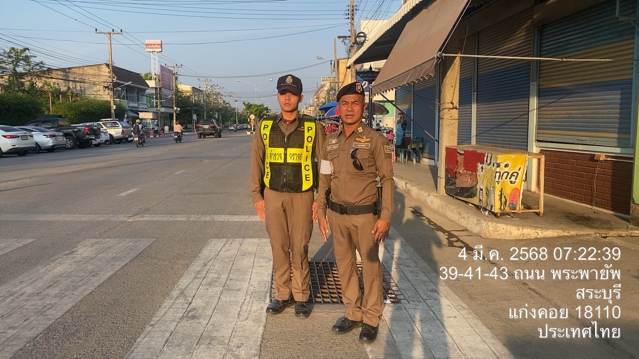 สภ.แก่งคอย ภ.จว.สระบุรี วันนี้ 4 มี.ค.2568 เวลา 07.20น.ร.ต.อ.ชูศักดิ์ ชนะแสวง ออกตรวจสภาพการจราจรถนน