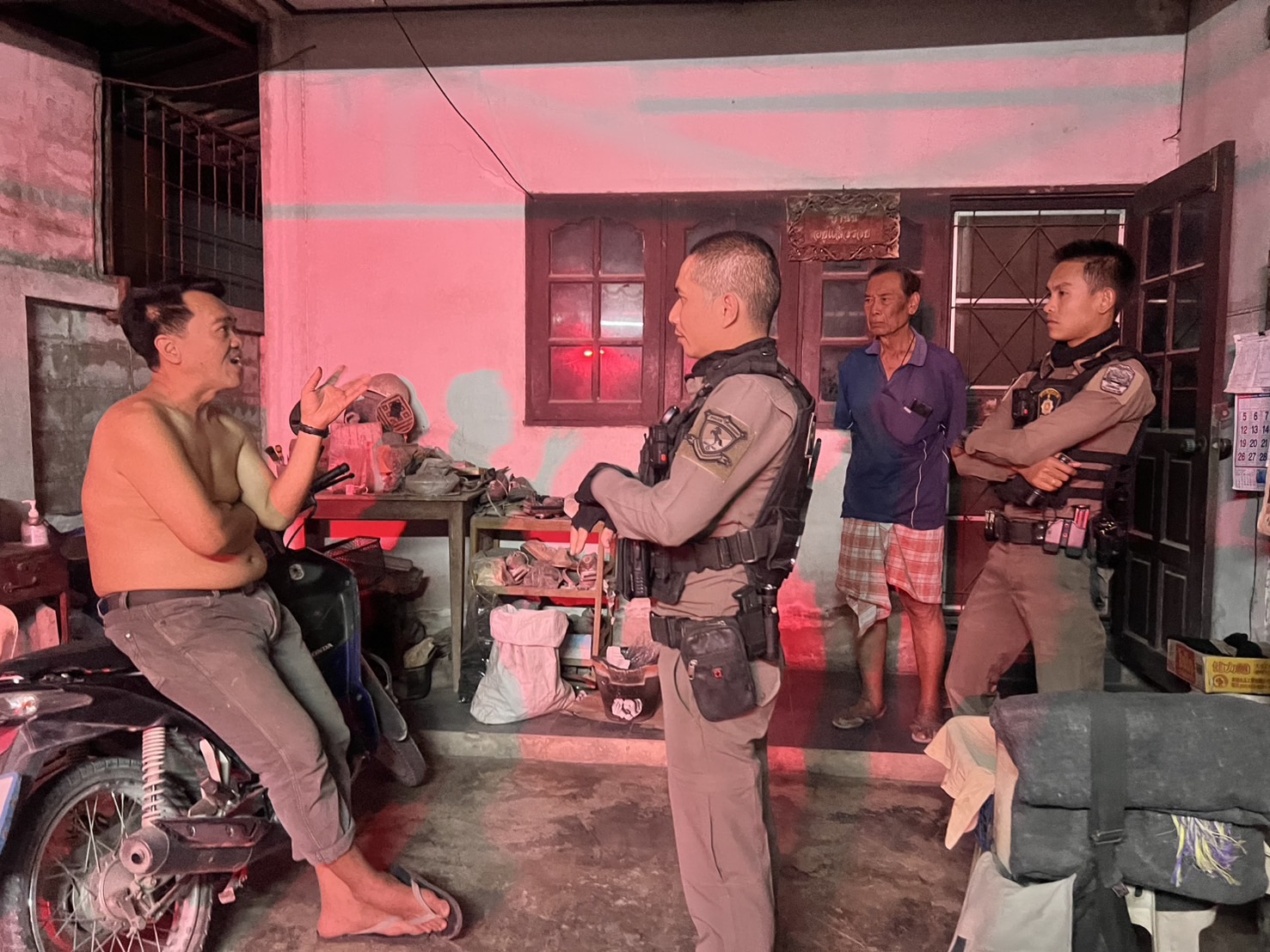 สายตรวจรถจักรยานยนต์ รับแจ้งเหตุ ลูกชายอาละวาดทำลายข้าวของ
