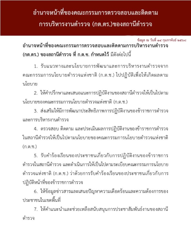 O4 : ข้อมูลคณะกรรมการตรวจสอบและติดตามการบริหารงานตำรวจ (กต.ตร.) ของสถานีตำรวจ