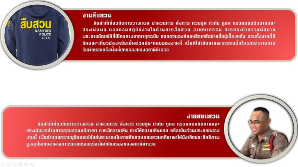 • รองผู้กำกับการสืบสวน เป็นหัวหน้างานสืบสวน