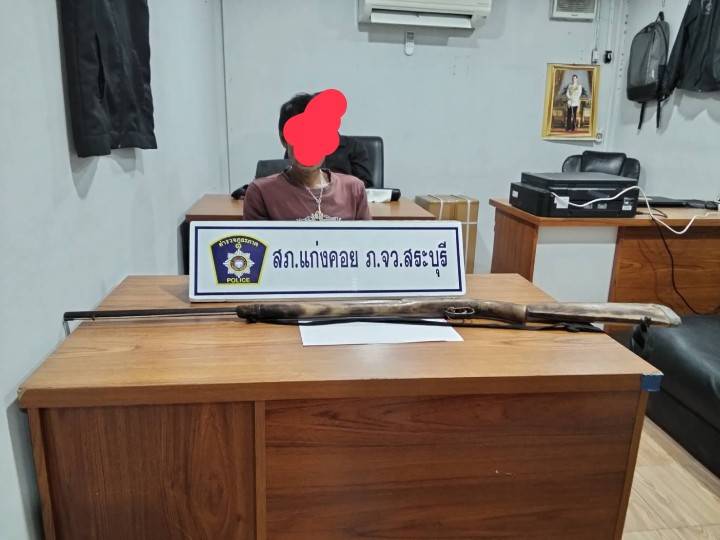 - พร้อมด้วยของกลาง อาวุธปืนยาวแบบประดิษฐ์ขึ้นเอง(ปืนแก๊ป) ความยาวลำกล้อง 30 นิ้ว จำนวน 1 กระบอก